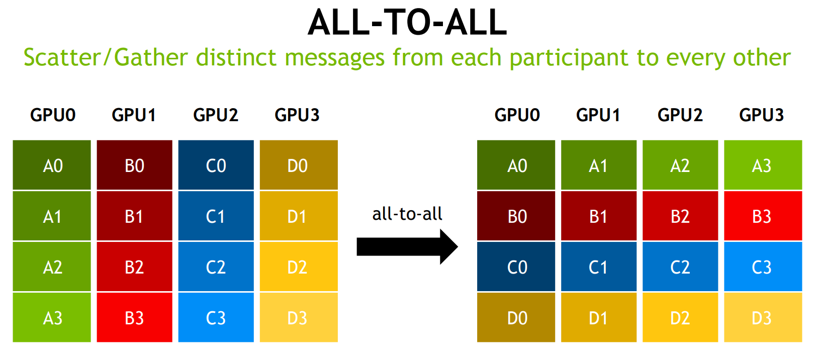首先理解这个alltoall,先不要困在计算形式上,而是想它的计算本质:每个device都想将它的subset发到每一个其他device上(包括它自己),每个device都接收来自其他device的subset. 这里一个All是dp rank,一个all是ep rank (在这个语境下,强调i, j对应关系的,都是虚张声势了。)