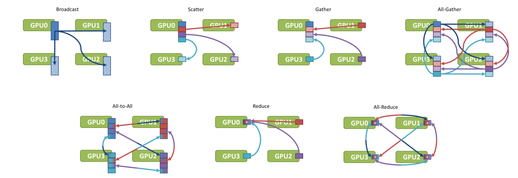 随着模型越来越大,单卡的算力和显存已经无法满足需求,多卡并行顺势而生。通信在多卡并行中扮演着重要角色,对性能也有影响。本文总结一些常见的通信元语,更多关注于推理(而不是训练)。